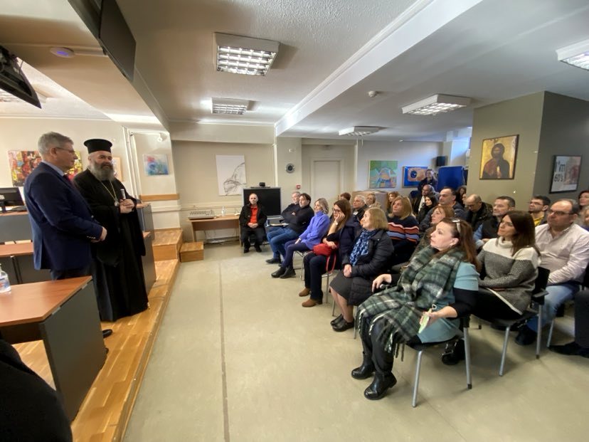 Ο νέος Ποιμενάρχης συναντήθηκε, επίσης, και με υπαλλήλους της Π.Ε. Φλώρινας, στην αίθουσα «Τραϊανός Πετκάνης», οι οποίοι τον καλωσόρισαν και του ευχήθηκαν καλή Ποιμαντορία.