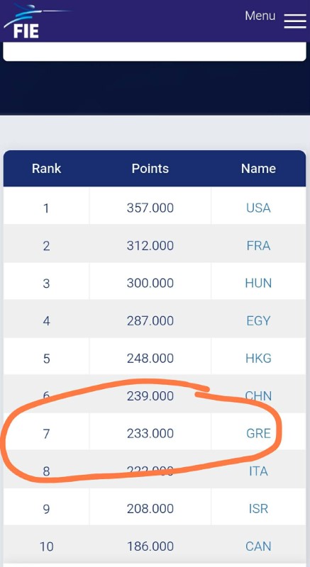 Ο σχετικός πίνακας είναι διαθέσιμος: https://fie.org/athletes